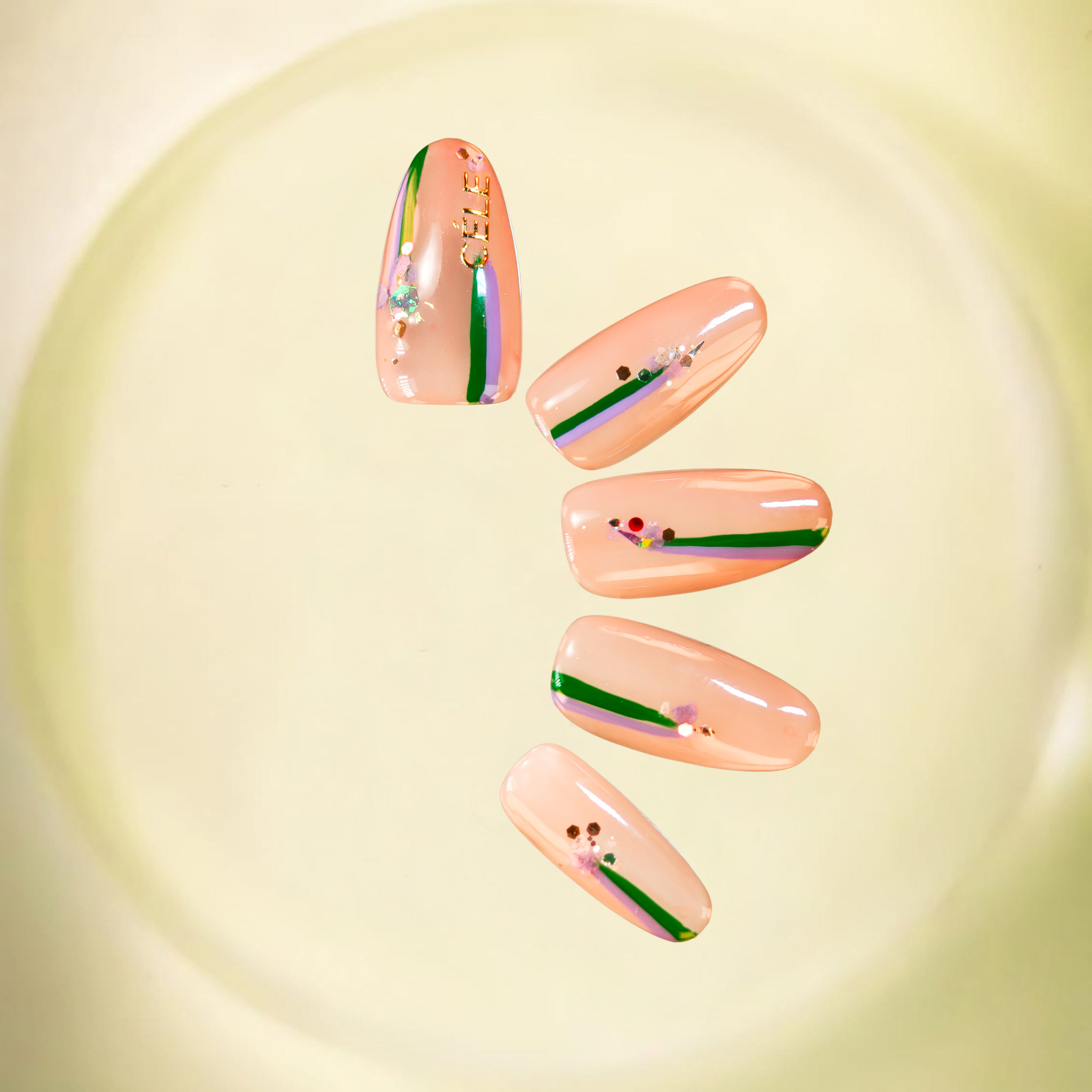 CÉLE’s Gentle Nail Glue Remover (4g)—effortless, safe, and kind to your natural nails Double-Sided Jelly Tabs (1 sheet) Application: Instant press-on system—no salon, no wait, just go. Need more? Standard-size nail glue and glue remover are available for purchase on our website.